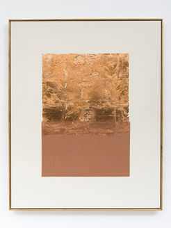 Folha de cobre e tinta spray sobre tecido de algodão cru